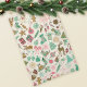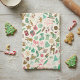 Make your kitchen merry with a colorful kitchen towel. This delightful kitchen accessory features folksy hand-drawn doodles of ice skates, gingerbread men, and snowmen in a cheerful palette of mint green and pink. The playful design captures the spirit of the season with a touch of nostalgia, reminiscent of the classic 1950s retro look.