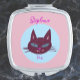 Retro Whimsical Pink and Blue Purring Cat Compact Mirror