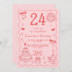 Retro Whimsical Quirky Red Pink 24th Birthday Invitation