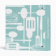Retro style implements for cooking and eating are featured on this cool recipe binder of classic cooking utensils in white on a cool aqua teal background. Customize the text on the spine with your family name or custom title.