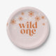 Wild One! Retro inspired first birthday party plates with 70's style daisies and boho fonts and colors.