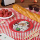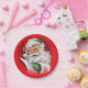 These Christmas plates are the perfect addition to your next holiday party. A smiling Santa Claus, in bright red and white, has a gleam in his eye and winks while checking over his naughty and nice list.