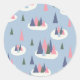This vintage looking design will look perfect on your packages or as envelope labels to seal your written correspondence. Modern trees on a snowy mound look modern yet retro...a mid-century modern vibe. Trees are pink, blue and green against a serene blue background. Coordinating items available in my store.
