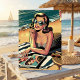 Birthday card joking about aging humor and memory problems. Retro pop art woman in sunglasses at the beach reading a fashion magazine.