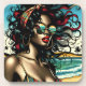 Retro Woman on Beach Comic Style Pop Art Beverage Coaster
