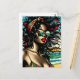 Retro Woman on Beach Comic Style Pop Art Postcard