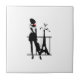 Retro woman red and black silhouette with Eiffel T Ceramic Tile