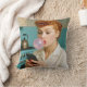Retro Woman Texting On a Cell Phone Throw Pillow