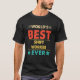 My 11 yo wore adult XL (5’7” 165#). The 8yo is small framed. She wore adult small and tied it in the back. Grandma wore adult large with long sleeve shirt underneath. Tall girl adult medium. Dark haired male adult large. Good quality dark Heather gray, Gildan brand shirt. -it was next up from basic choice and cost about $20 per shirt. Not too thick or thin. Washed and dried well, no major shrinkage. Not see-through. Can wear a bra under it fine. Screen print is just as shown and well done, front and back.