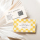 Retro yellow Cream Wavy Checkered Pastel QR Code Business Card