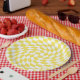 Retro Yellow Lemon Checked Warped Checkerboard Paper Plates