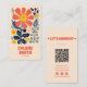 A Vintage retro colorful floral flowers business card. As you see it features a handmade groovy floral pattern of boho abstract flower daisies .It has nostalgic seventies vibes and colors and groovy fonts. And you can simply and easily customize the name and profession and QR code. By clicking on the personalize button. So grab it and make it yours so you your business is catchy and way different.