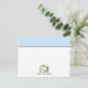 Flat notecard featuring an illustration of a retro yellow television set with rabbit ear antennas. TV says "Stay tuned for an important message from" personalize with your name at bottom. Top is blue with green polka dots.