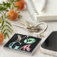 Retro Yoga Typography with Silhouettes of Poses Keychain