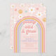 Retro Young Wild and Three Rainbow 3rd Birthday Invitation