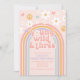 Retro Young Wild and Three Rainbow 3rd Birthday Invitation
