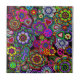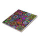 A tile with a lively and colorful design of peace signs, paisley, ankhs, hearts, and flowers. A far-out flash back to the 1960's.