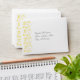 This personalized yellow, gray, and white floral A2 envelope has removeable PRINTED images on it that include a pair of joined yellow faux glitter and diamond jewel joined hearts that match the wedding invitation shown below. It is designed for you to use with your outgoing RSVP card. ****PLEASE NOTE that these envelopes take 10-14 BUSINESS days to manufacture, plus shipping time. Customize it to have your own return address on it. If you require any changes, or would like some other design element added to the envelope, please email niteowlstudio@gmail.com.