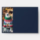Create Christmas holiday themed envelopes that include your return address. Options include adding a photo to the envelopes. Add your desired photo or keep what is shown. Blue envelopes with gold text. Great coordinate item from the Christmas Star design collection. Use the template to create your own return address envelope.