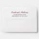 This wedding invitation envelope features custom style return address text on the back flap. The envelope color can be customized to a different background color.