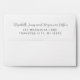 This wedding invitation envelope features custom style return address text on the back flap. The envelope color can be customized to a different background color.