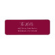 A stylish modern return address label featuring a handwritten script font for your family surname in white on a burgundy ruby maroon crimson scarlet wine red background. This elegant and minimalist design is perfect for everyday use or the holiday season, offering a timeless and personalised touch for your mail. The name and address can be easily customised for couples, families, or individuals, making it ideal for Mr and Mrs, newlyweds, or households who want a cohesive, polished look. Simple yet sophisticated, this label pairs beautifully with our matching stationery and holiday card collections. A versatile and modern design that adds elegance to any envelope all year round.