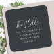 A stylish modern 1.5" square return address label bulk roll featuring a handwritten script font for your family surname in white on a bluish off black background. This elegant and minimalist design is perfect for everyday use or the holiday season, offering a timeless and personalised touch for your mail. The name and address can be easily customised for couples, families, or individuals, making it ideal for Mr and Mrs, newlyweds, or households who want a cohesive, polished look. Simple yet sophisticated, this label pairs beautifully with our matching stationery and holiday card collections. A versatile and modern design that adds elegance to any envelope all year round.