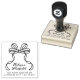 A feminine coquette bow return address rubber stamp design featuring a simple bow ribbon outline and mix of modern and scripted typography name and address. This elegant and contemporary design combines clean lines with delicate flair. A timeless 2.5" square wood art stamp design that feels pretty, stylish, and understated - perfect for families, small businesses, or anyone who loves minimal, grandmillennial preppy aesthetics.