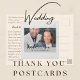 Script Lettering Heart Tales Wedding Photo Thank You Postcard With Personal Message & Return Address. This customizable modern photo card expresses gratitude to your guests for their presence and gifts. Just add your favorite wedding picture. You can change the colors and fonts OR leave the thank you message template section blank to handwrite.