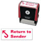 This rubber stamp design features the message "Return to Sender", along with an arrow symbol. It could be used to indicate that received postal mail has been delivered to the wrong address, and should be returned to the sender.