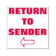 This rubber stamp design features the message "RETURN TO SENDER" along with an arrow. It could be used on letter mail that has been delivered but for which the recipient is unknown.