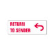 This rubber stamp design features the message "RETURN TO SENDER", along with a representation of a curved arrow. It could be used on letter mail that has been delivered but for which the recipient is unknown.