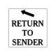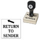 This simple rubber stamp design features the message "RETURN TO SENDER", along with an arrow symbol. It could be used to indicate that received mail has been delivered to the wrong address or that the recipient is unknown, and should be returned to the sender.