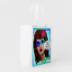 I own a lot of reusable grocery bags, but this one holds its box shape and simply stands up on its own even if there is nothing in it. Its stiffer than your regular reusable bag too, and the material is water resistant. I poured water on the exterior and it didn't penetrate inside to the other side. I'm buying a couple more. Wish I knew how durable these bags were or I would have purchased a few more with my initial order. I also like how it folds and buttons up when not in use, making it easy to put into a handbag or luggage. I haven't used this bag yet, as I purchased it for travel use, like when you're at the airport and need to small sturdy bag to place any airport purchases in, like food, souvenirs etc. I can tell you when you first see this bag, it looks very cheap, but after closer inspection of the material and the seams its a very sturdy reusable bag. I tested it out by putting some really heavy objects inside and I could not observe any stress to the bag at all. Another thing I like about it, is the fact the medium size that this is makes it easy to just carry it in your hand without the bottom of the bag scraping the ground, like most other bags do when you're short. That alone, deserves 5 stars. I just wish there were more colors to choose from! The PDX Airport Carpet printing looks just like the photo, and using this bag during travel might be a conversation piece when/if a native from Oregon happens to see it.
