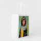 I own a lot of reusable grocery bags, but this one holds its box shape and simply stands up on its own even if there is nothing in it. Its stiffer than your regular reusable bag too, and the material is water resistant. I poured water on the exterior and it didn't penetrate inside to the other side. I'm buying a couple more. Wish I knew how durable these bags were or I would have purchased a few more with my initial order. I also like how it folds and buttons up when not in use, making it easy to put into a handbag or luggage. I haven't used this bag yet, as I purchased it for travel use, like when you're at the airport and need to small sturdy bag to place any airport purchases in, like food, souvenirs etc. I can tell you when you first see this bag, it looks very cheap, but after closer inspection of the material and the seams its a very sturdy reusable bag. I tested it out by putting some really heavy objects inside and I could not observe any stress to the bag at all. Another thing I like about it, is the fact the medium size that this is makes it easy to just carry it in your hand without the bottom of the bag scraping the ground, like most other bags do when you're short. That alone, deserves 5 stars. I just wish there were more colors to choose from! The PDX Airport Carpet printing looks just like the photo, and using this bag during travel might be a conversation piece when/if a native from Oregon happens to see it.