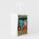 I own a lot of reusable grocery bags, but this one holds its box shape and simply stands up on its own even if there is nothing in it. Its stiffer than your regular reusable bag too, and the material is water resistant. I poured water on the exterior and it didn't penetrate inside to the other side. I'm buying a couple more. Wish I knew how durable these bags were or I would have purchased a few more with my initial order. I also like how it folds and buttons up when not in use, making it easy to put into a handbag or luggage. I haven't used this bag yet, as I purchased it for travel use, like when you're at the airport and need to small sturdy bag to place any airport purchases in, like food, souvenirs etc. I can tell you when you first see this bag, it looks very cheap, but after closer inspection of the material and the seams its a very sturdy reusable bag. I tested it out by putting some really heavy objects inside and I could not observe any stress to the bag at all. Another thing I like about it, is the fact the medium size that this is makes it easy to just carry it in your hand without the bottom of the bag scraping the ground, like most other bags do when you're short. That alone, deserves 5 stars. I just wish there were more colors to choose from! The PDX Airport Carpet printing looks just like the photo, and using this bag during travel might be a conversation piece when/if a native from Oregon happens to see it.