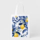 Lemon branches in blue reusable grocery tote.