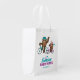 I own a lot of reusable grocery bags, but this one holds its box shape and simply stands up on its own even if there is nothing in it. Its stiffer than your regular reusable bag too, and the material is water resistant. I poured water on the exterior and it didn't penetrate inside to the other side. I'm buying a couple more. Wish I knew how durable these bags were or I would have purchased a few more with my initial order. I also like how it folds and buttons up when not in use, making it easy to put into a handbag or luggage. I haven't used this bag yet, as I purchased it for travel use, like when you're at the airport and need to small sturdy bag to place any airport purchases in, like food, souvenirs etc. I can tell you when you first see this bag, it looks very cheap, but after closer inspection of the material and the seams its a very sturdy reusable bag. I tested it out by putting some really heavy objects inside and I could not observe any stress to the bag at all. Another thing I like about it, is the fact the medium size that this is makes it easy to just carry it in your hand without the bottom of the bag scraping the ground, like most other bags do when you're short. That alone, deserves 5 stars. I just wish there were more colors to choose from! The PDX Airport Carpet printing looks just like the photo, and using this bag during travel might be a conversation piece when/if a native from Oregon happens to see it.