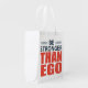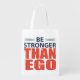 This reusable grocery bag design features a bold and motivational phrase that reads, **"BE STRONGER THAN EGO."** The text is split into three distinct lines for emphasis: