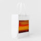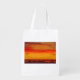 This reusable grocery bag is enhanced by using an abstract art print titled: Orange Ocean Sunset by artist Kirt Tisdale. The colorful art adds an enhancing element to the product.