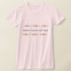 My overall review is that the T-shirt is nice, it fits true to size however the font is significantly smaller than advertised and you can't read it. The printing is unreadable and there is a strain to read it. It does not look like the advertised product. Maybe the shirt color is darker or a larger more visible font should have been used. Photos with and without flash and font is barely legible.