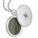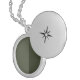 This custom locket necklace features a reversed vertical split: a smooth moss green enamel on the left and a textured, noise-effect moss green on the right. Hidden behind a silver locket cover engraved with a radiant star and accented with a crystal, this piece symbolizes contrast, duality, and personal depth.