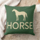 Reversible Dark Green & Cream Horse Equestrian Throw Pillow
