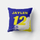 Personalize this name and number color mix, paint brush style blue, yellow, and white throw pillow. The options to change the font type or color of the text are available. Ideal for a man cave, dorm room, or bedroom.