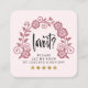 Ask your customers to leave a 5 star review with these cute floral review business cards. Design features floral wreath with hearts , typography script ''love it'' please let me know by leaving a review on a blush pink background. And your logo, thank you message and contact details on the back.