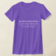 My overall review is that the T-shirt is nice, it fits true to size however the font is significantly smaller than advertised and you can't read it. The printing is unreadable and there is a strain to read it. It does not look like the advertised product. Maybe the shirt color is darker or a larger more visible font should have been used. Photos with and without flash and font is barely legible.