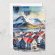 This postcard features a watercolor portrait of Reykjavik, Iceland.