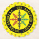 Yellow, Red Black and Green Snowflake with Snowflakes Pattern Add Name Kwanzaa Party Paper Coaster with custom text: Joyous Kwanzaa The Anderson Family, you can change or delete the text