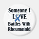 Rheumatoid arthritis RA design. Support and awareness for rheumatoid arthritis, an painful, debilitating auto-immune disease. Features the RA blue ribbon for awareness and the words "Someone I love battles with Rheumatoid"