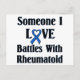 Rheumatoid arthritis RA design. Support and awareness for rheumatoid arthritis, an painful, debilitating auto-immune disease. Features the RA blue ribbon for awareness and the words "Someone I love battles with Rheumatoid"